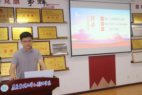 6月17日下午,在公司四楼会议室举办培训开班仪式。在开班仪式上,谭占海指出,此次培训是深化党纪学习教育的实际需要,是切实推进党员队伍建设的需要。以“《中国共产党纪律处分条例》解读”为题,谭占海为大家授课,他强调全体党务工作者应认真学纪、知纪、明纪、守纪,将其内化于心、外化于行,为公司事业的高质量发展提供坚实的保障。以“学党章,强党性”为题,教工第一党支部书记樊宁带领大家学习了党的二十大章程修改的九个要点、中国共产党章程(2022年新旧对照版)和党务工作者的职责。力求对加深对党员行为准则的理解掌握,保持共产党员的先进性。唐茜带领着大家一起观看了警示教育视频《绝不姑息——贵州正风肃纪反腐》之第二集《坚持风腐同查》。通过线上学习的方式,大家一起在贵州网院上学习了“党纪学习教育”专题。