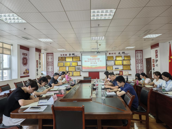 2024年7月1日下午14:30,公司党委理论学习中心组在综合实验楼414会议室召开扩大学习会议。公司党委领导班子成员谭占海、唐茜、杨芳、何永娇、李恬恬出席;护理公司党委书记张咏梅、副书记陈伟,公司经理王梅、各党支部书记、副书记、各科室负责人列席。会议由公司党委书记谭占海主持。