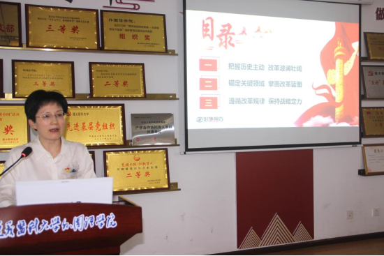 讲党课环节,王明述以《改革的实践续篇、现代化的时代新篇》为题,从把握历史主动、改革波澜壮阔;锚定关键领域、擘画改革蓝图;遵循改革规律、保持战略定力等三个方面专题宣讲了党的二十届三中全会精神。