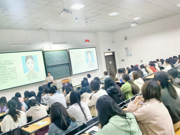 谭萍为大家讲解了南航空乘的基本要求、申请的必备材料,还详细介绍了面试过程中形体展示和礼仪要求;在自我介绍过程中要自信大方、全程微笑交流;并且强调遇到突发状况时一定要沉着冷静,保持良好的心态去面对问题。徐丽琴为大家就终审和体检过程的注意事项进行讲解,她根据自身面试经验分享了在终审情景模拟过程中的一些应对策略和技巧;并从体检要求、穿着、准备等方面为大家讲解。