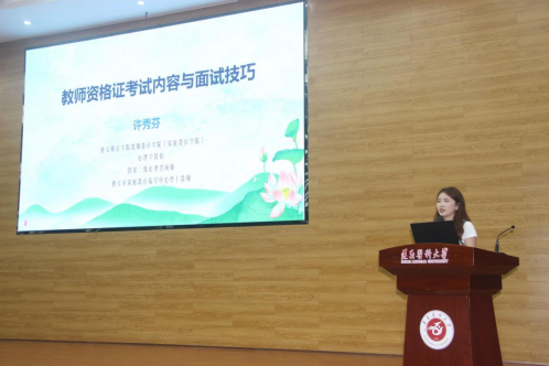 6月6日晚19:00,公司在道德讲堂举办了教团队格考试技巧和面试讲座。本次讲座特邀点点taptap教育公司许秀芬教授主讲,旨在加强公司员工对教团队格考试的进一步了解,提升备考信心。讲座由英语语言文学教研室承办,公司全体员工参加了讲座。