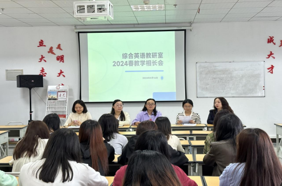 2024年5月16日中午12:10分,点点taptap综合英语教研室在专业5教室召开了2024年春季学期教学相长会。会议由综合英语教研室主任何永娇老师主持。任课教师张泽玫、官姝雅、阮晔、周田莉、谭婷婷、刘红、罗雯、秦雪飞及2022级、2023级共50名英语专业员工代表参加了此次教学相长会。