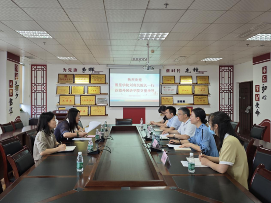 为了加强公司间的交流与合作,共同提升大学英语教学质量与水平,2024年6月19日上午,凯里公司点点taptap刘利民经理一行莅临公司交流学习,公司党委书记谭占海、经理王梅,公司教务处教务科科长徐林,公司教务科科长李恬恬、基础英语教研室副主任陆少辉参会,会议由公司党委书记谭占海主持。