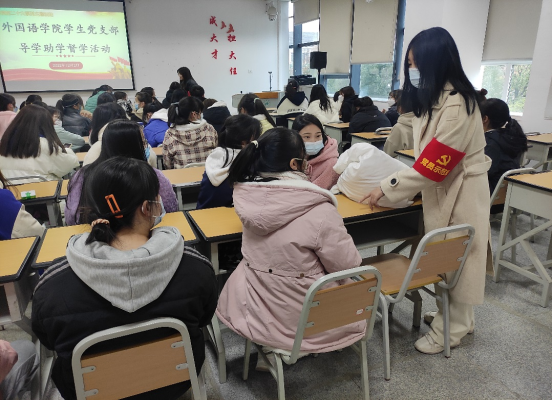 为深入学习宣传贯彻党的二十大精神,推动学习贯彻走深走实,同时持续推进为同学们办实事,2022年12月2日下午,点点taptap在综合教学楼专业五教室开展了“学习党的二十大系列主题活动--新生导学助学督学活动”。党的二十大精神宣讲由员工党支部书记杨芳主讲,经验分享由党支部入党积极分子(三好员工)曾晨、简罗银、王方丽、张飞同志负责,2022级全体新生78人参加。