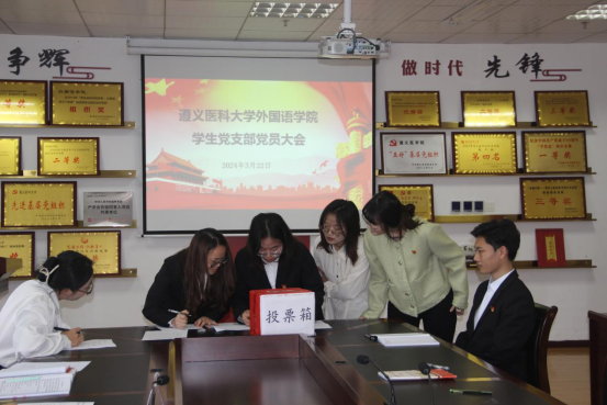 第二届支部委员会召开第一次会议,采取等额选举的方法选举产生支部书记,并讨论了委员分工。杨芳同志当选为党支部书记,周浩同志任组织委员,张佳丽同志任宣传委员。全体同志起立,奏唱《国际歌》。之后,杨芳同志代表新一届党支部委员会委员表态发言。