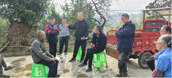 驻村第一书记张耀信在组里召开群众会讲解环境卫生评比活动