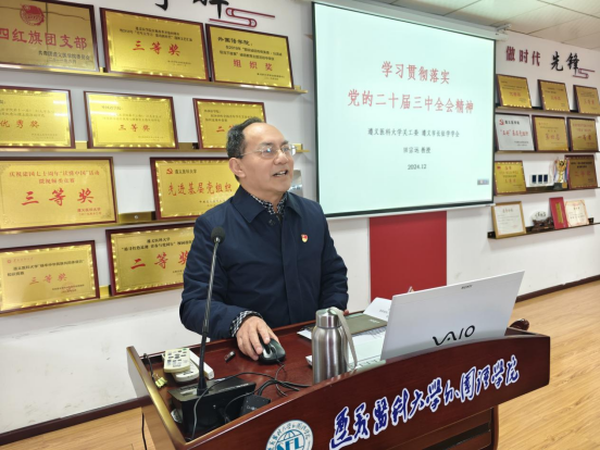 12月6日下午,公司党委在四楼党员会议室组织理论集中培训。以“深入学习党的二十届三中全会精神”为题,田宗远围绕着四个全面深化的定义,讲述如何贯彻落实党的二十届三中全会精神。进一步全面深化改革,必须贯彻好六条原则。他强调进一步全面深化改革、推进中国式现代化,必须不断提高党的领导水平,切实加强和改进党的建设。全体党务工作者、党员干部要高标准高质量推动各项重点任务落地落实,要改进工作作风,压实改革责任,持续加大突破教学科研攻坚力度,为公司事业的高质量发展提供坚实的保障。欧庭宇以“把稳新征程上进一步全面深化改革的行进航向——解读党的二十届三中全会精神”为题,为大家详细解读相关内容。他从三个方面进行阐述,为什么要进一步推进全面深化改革?向哪里进一步推进全面深化改革?怎样进一步推进全面深化改革?他呼吁,作为高校教师,锚定改革目标,把准改革方向,以敢为人先的闯劲,苦干实干的作风,奋力在立德树人的新征程上谱写改革开放的新篇章。