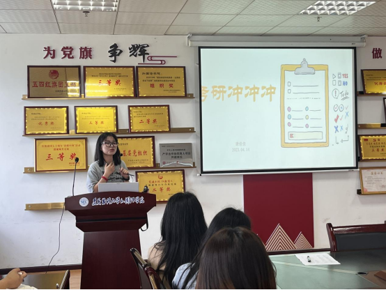 杨芳向大家介绍了公司今年的考研情况,并表示公司将对公司学子的备考给予全力全方位支持。她对备战考研的同学介绍了考研的重要性,提出了几点建议,并给予了厚望。四位同学畅谈了自己的考研经历,表达了对公司培养的感恩之情。他们围绕着报考院校和专业的确定、复习进度的安排、备考资料的选择、学习方法的运用、解压方法的技巧等方面进行了详细的阐述。她们还重点提醒大家,根据自己的实力理性报考院校,根据目标院校的出题风格有针对的复习,不能照搬别人的学习经验,要根据自己的实际情况合理定位。复试更要提前做好充足准备,重中之重是一定要全力以赴坚持到最后一刻。