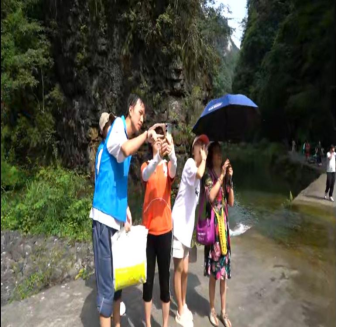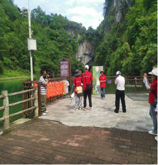 Part 2:走进绥阳景区通过拍摄宣传视频开展旅游推荐,并通过引导游客开展志愿服务。我们走入了负氧离子含量极高的红果树景区,这里拥有多种珍稀动、植物,更有国家一级保护植物红豆杉,景区内瀑布、河流、溶洞、森林与奇山怪石为一体,有着“贵州地质博物馆”之美誉;去到了拥十里峡谷,植被茂密,溪流清澈,有“露营者天堂”的美誉的观音岩生态旅游景区。实践队一路边走边看或驻足拍摄或激烈讨论,大家表示,我们的家乡,我们来宣传;我们的美景,我们来介绍,纷纷担当起了导游,用自己的所知所感宣传贵州,宣传绥阳。