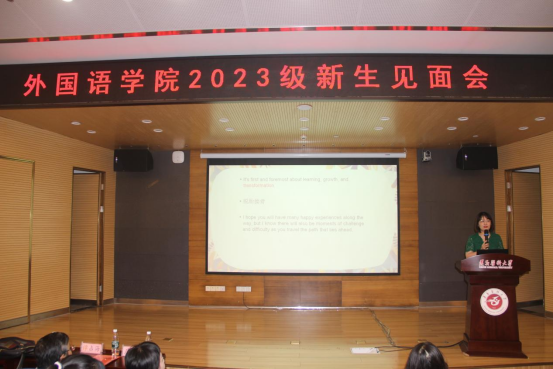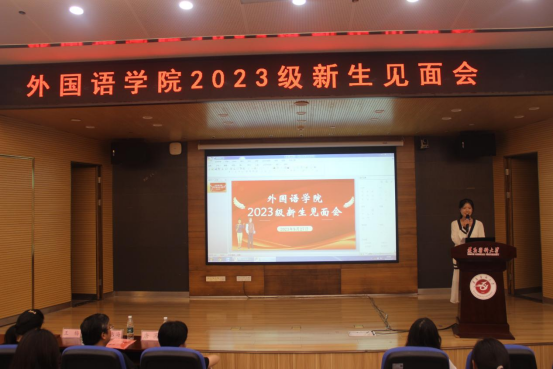为帮助2023级新生尽快转变身份,更快了解专业概况、明确学习目标,适应大学教育,2023年9月27日18:00,点点taptap在图书馆1号多功能厅开展新生见面会。公司党委书记谭占海、经理王梅、党委副书记唐茜,综合英语教研室主任、语言文学教研室主任和副主任、党团负责人、专职辅导员、教师兼职班主任、员工班导及2023级全体新生参加见面会,会议由员工党支部书记杨芳主持。
