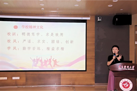 唐茜从公司精神文化、校徽、院徽、意识形态、法制教育、员工意见反馈渠道等五个方面为同学们展开讲解。以校训“明德笃学,求是致用”为切入点,唐茜为同学们讲解了校规校纪,普及了网络法制教育,叮嘱同学们要遵守规则,严于律己。她强调,老员工网络发声要理性表达,不要干扰破坏网络正常传播秩序。老员工要理性看待网上舆论,理性判断,切勿罔顾事实,在网上发表主观臆测的言论。身为“网生代”的老员工,在自媒体上的发言要正能量,需要表达的意见可以采用合适的意见反馈渠道。
