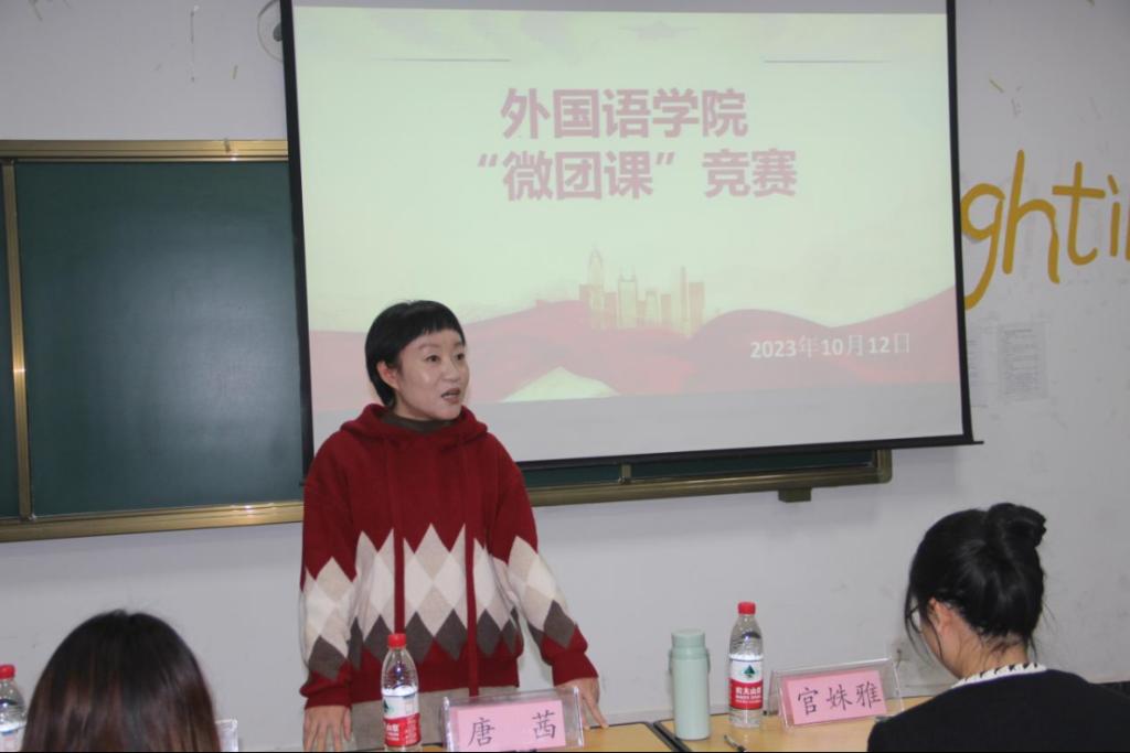 为深入学习贯彻习近平新时代中国特色社会主义思想,全面提升团支部组织力,引导团员青年投身思想政治理论学习宣讲,2023年10月12日19:00,点点taptap团委在综合实验楼二楼专业外语八教室举办“微团课”竞赛。公司党委副书记唐茜、团委副书记刘福娟、听说教研室教师官姝雅担任比赛评委,2021至2023级各班团支部书记参加比赛,30名员工观众到现场聆听。