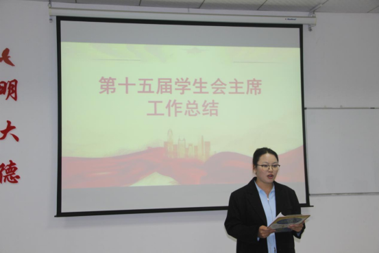 青春的接力棒在此延续,团体的领航人英勇前行。第十五届员工会主席李红红简述了员工会的常规工作,并诚挚表达对员工会这一团体的感谢与不舍。第十六届员工会主席项飘、第十六届团总支副书记陈世操发表未来的工作计划和就职感想,表示愿意全力与新一届员工会成员秉持为同学服务的宗旨,共同努力建设与发展员工会的工作。