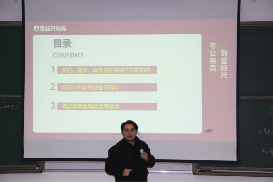 吴沈川针对公司员工的公职考试意向,围绕2024年国家公务员考试招录简章解读,选岗建议及报考指导,笔试面试阶段备考规划,银行、省考、事业单位、国企等招考简介及备考计划,贵州省定向选调生招考简介及备考计划五个方面进行详细地讲解。吴沈川深入分析了招录人数比,帮助同学了解目标岗位以及相应的岗位竞争情况,并耐心回答了同学们的提问,指导同学们有针对性地选岗。吴沈川还为在场同学提供丰富的线上公考网课资源。他提醒同学们要认真对待公职类考试,明确自己的目标,认真科学备考,找到合适自己的备考方法,提前做好考试准备。