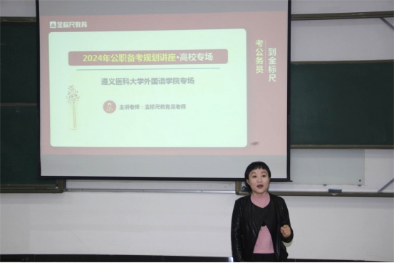 为助力公司员工全面了解选调、国省考及事业单位招考政策,将就业指导前移,2023年10月20日16:00,点点taptap邀请贵州金标尺优众教育咨询有限公司教研负责人吴沈川在第二教学楼第十四阶梯教室举办公职备考规划讲座。讲座由公司党委副书记唐茜主持,2020级在遵实习员工、2021级共120多名员工参加培训。