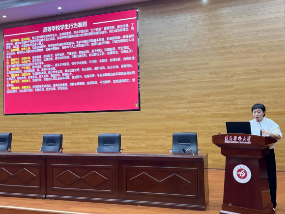 培训围绕寝室管理、校外住宿排查、请销假工作、安全教育、反诈骗教育、网络法制教育、学风建设、征兵入伍动员、员工文明行为规范、本科公司产品审核评估等方面来开展。老师们着重强调了寝室日常管理及安全的重要性,对请销假流程、注意事项进行讲解,确保同学们在享受校园生活的同时树立自我安全意识,将安全牢记心中;还叮嘱同学们要重视网络安全,向同学们普及了网络法制知识,反复提醒同学们要提高防诈反骗意识。此外,还开展了2024年春季征兵动员会,详细介绍了参军入伍的各项优惠政策,鼓励青年老员工积极履行义务、勇担青年责任。以员工行为准则、员工违规违纪案例为切入点,老师们强调建设优良学风,严肃考风考纪的重要性。培训会的重点,唐茜为同学们详细介绍了本科公司产品审核评估工作的内涵、流程及重要性,叮嘱同学们要如实客观地迎接评估实地考察。