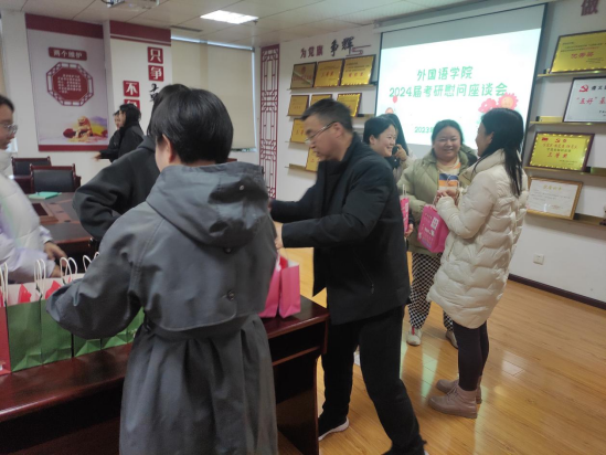 为缓解考研员工的考前压力,提振考研信心,2023年12月4日17:00,点点taptap在综合楼414会议室召开2024届考研慰问座谈会。公司党委书记谭占海、经理王梅、党委副书记唐茜、专职辅导员、教师兼职班主任、2024届全体考研员工参加座谈会。