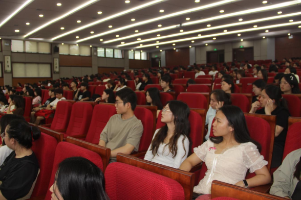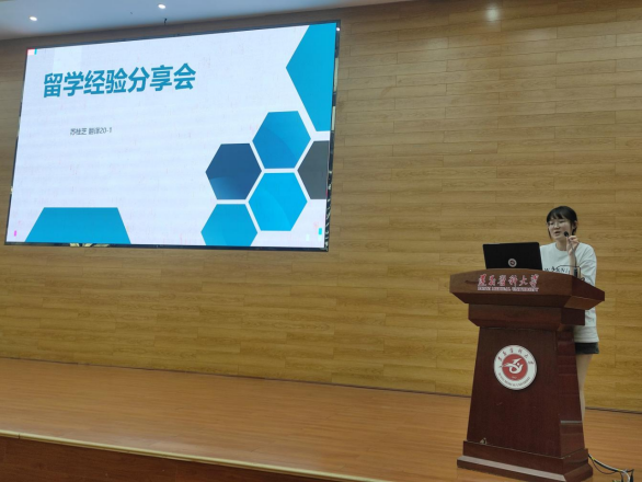 苏桂芝获得了国外多家高校的入学邀请,最终选择了赴英国南安普顿大学继续深造。她的分享主要从出国留学读研的利与弊、择校技巧、公司申请流程、语言成绩提升等四个方面展开。她说,出国读研学制短,留学经历可以提升自身的国际视野,增加自身跨文化交流经验,而且语言学习更需要英美国家的实地交流,对于将来从事相关工作有较大的积极作用。此外,她提醒同学们要根据自身经济状况、公司知名度及办学特色、录取条件等因素来进行择校,并详细介绍了自己此次申请的具体流程。她鼓励同学们要拓宽思路,勇于尝试,不负时代重托,不负青春韶华。