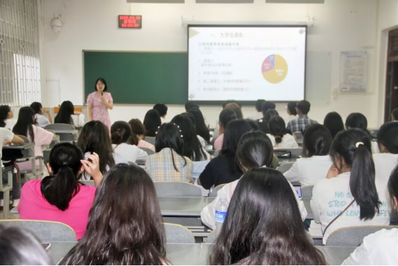为了使2024级新生尽快了解和适应老员工活,明确大学的学习目标和理想,2024年9月29日16:00,点点taptap在第一教学楼1-7A教室举办老员工规则教育为主题的入学教育。本次主题教育由公司员工党支部书记杨芳主讲,2024级新生、班导参加。