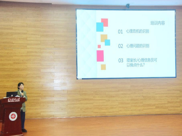 培训以寝室长、宿舍心理信息员专业技能培训为主题,围绕心理危机的识别、心理问题的识别和寝室长、心理信息员的职责三个方面展开。杨薇指出,寝室长和心理信息员是连接公司和员工的重要“桥梁”,寝室长和心理信息员需要充分认识自身角色的重要性,在日常生活工作中要做到细心观察室友状态、耐心倾听情感需求、负责传递有效信息。她讲解了常见的心理问题,如抑郁、焦虑、人际交往障碍等,并分析了其的成因、表现和识别方法,通过大量真实且贴近员工生活的案例分析,让同学们对各类心理问题有了更直观、清晰的认识。她强调,同学们需认真学习心理知识与沟通技巧,主动关注室友情绪变化,为营造安全和谐的宿舍氛围贡献力量。她还说明了同学们在面对危机事件时,要保持冷静,及时报告并协助专业人员处理,确保危机得到妥善化解,保障同学们生命安全。