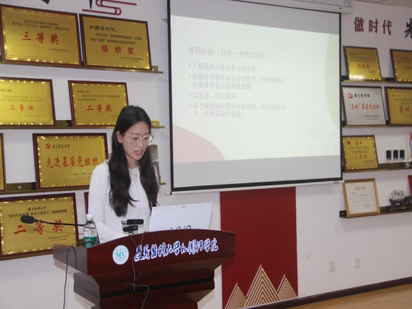 在考研经验交流会上,宋源源围绕考研院校选择展开深度讲解,她结合自身经历,提醒同学们应当综合个人实力、职业规划与兴趣方向审慎抉择;她详细分享了查阅院校招生简章、剖析历年报录数据、联系在读学长学姐等实用调研方法。侯瑞雪着重分享了备战心得、压力管理策略;她还毫无保留地分享了调剂经验,从调剂信息筛选、院校精准匹配到复试准备。肖梦云聚焦备考资料与复习方法,推荐了一系列优质的教材、网课与习题资源,并详细介绍了自己的阶段性复习计划,通过合理分配时间、灵活调整进度,实现高效备考。最后,唐茜和杨芳从公司的角度提出了备战规划建议,初试复试注意事项。